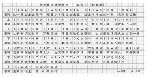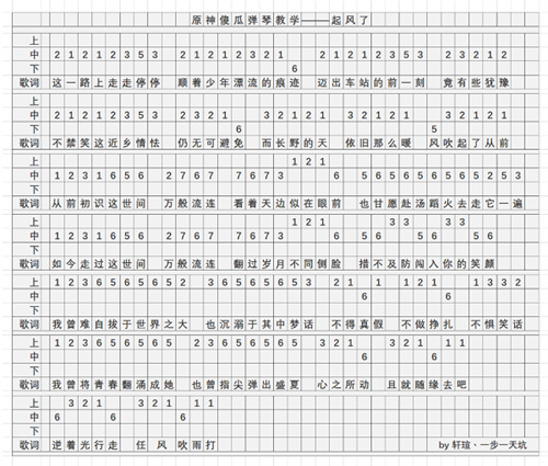 Ps:上中下代表的就是原神中上中下三行键,依次弹奏就可以。