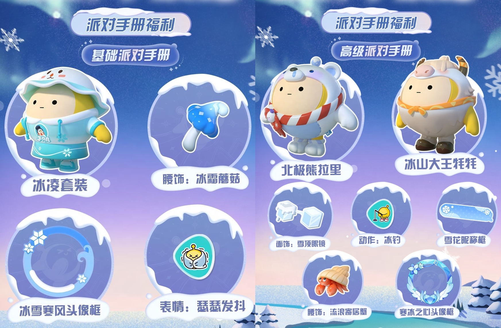 蛋仔派对全新赛季寻光冰雪即将在12月1日拉开帷幕,此次赛季将有许多新皮肤上线,包括了派对手册皮肤冰凌套装、冰山大王牦牦、北极熊拉里,任务外观、段位外观等,想要全部了解不妨看看下面的内容。